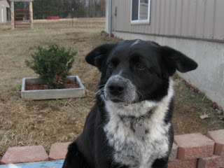 I'm sitting on our picnic table with Molly and Mickey. Mickey always has to try and show off a little for Ms. Charlene (boys are silly) so he is doing a trick by standing and sitting at the same time and giving the camera a big smile.