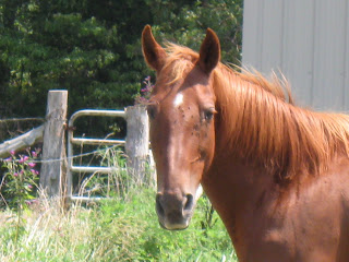 I don't know why her owners named her that. We think Pockets is a really funny name. Me and my brothers and sisters have given her a good looking over and still cannot see anything that looks like a pocket on her. Ms. Charlene said it's not really important how we get our names, but what is important is that Pockets' family decided to bring her to the Black Dog Ranch because she wasn't getting enough grass where she lives. Ms. Charlene said Pockets will stay here from a few months and after she has gain some weight (like Cheif and Chance) she can go back to her own farm. Ms. Charlene said that is what it is all about anyway. Lending a helping hand to those in need. (Oh, the farmers next door moved the new colt so Ms. Charlene didn't get a picture of him).