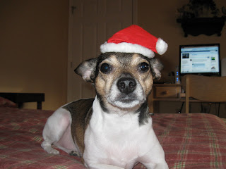 Charlie is getting into the Christmas spirit this year. He posed for Ms. Charlene to get a picture of him in his new Santa Hat. Maggie told him she wasn't going to put the hat on, but she would be glad to share in all the treats in his Christmas Stocking!