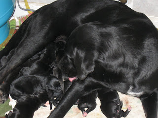 Milly, a mixed breed adopted Black Dog, gave birth to ten healthy puppies this week-end. No one knew she was going to be a mommy including Milly, but they are all doing well and inside where it is safe and warm!!Don't forget to stop by our website, http://www.blackdogrescueranch.com/ and pick up a copy of our book, "Stories from Black Dog Ranch" or if you can, make a donation, help us help dogs and other animals!