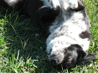 I'm acting silly for Ms. Charlene in this picture...it is a cool summer morning and it just feels good to roll around in the grass. I mean isn't that what us dogs are suppose to do???