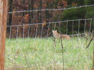 t was snooping around the barn???? A COYOTE! First Molly barked at him and when he turned around it scared her so she ran and told Teddie and the rest of us and we ran to the back fence and bark for a really long time at him. I think he knew that we couldn't get out of the yard so he just hung around for a while and then disappeared. We felt kind of bad because we didn't even scare him off for Ms. Charlene. She said that was ok and that he was just trying to find food for his family and we should probably let him do that as long as he wasn't hurting anyone. Ms. Charlene says he is one of God's creatures just like the rest of us and we really shouldn't judge.